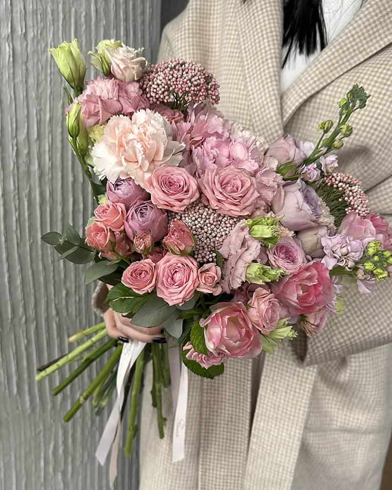 Букет из микса пастельных цветов — нежное и уникальное решение для подарка близкому человеку.
